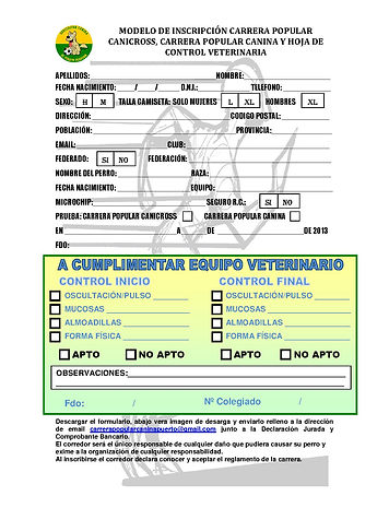 Pinchando en el modelo de inscripción podréis descargarla, una vez rellena y firmada, se enviara junto el comprobante bancario y la declaración jurada a la siguiente dirección de correro electronico carrerapopularcaninapuerto@gmail.com.